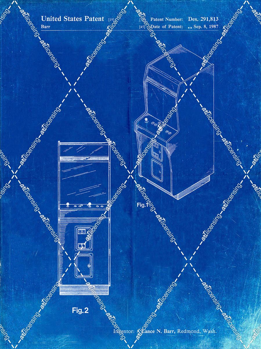 PP357-Faded Blueprint Arcade Game Cabinet Front Figure Patent Poster