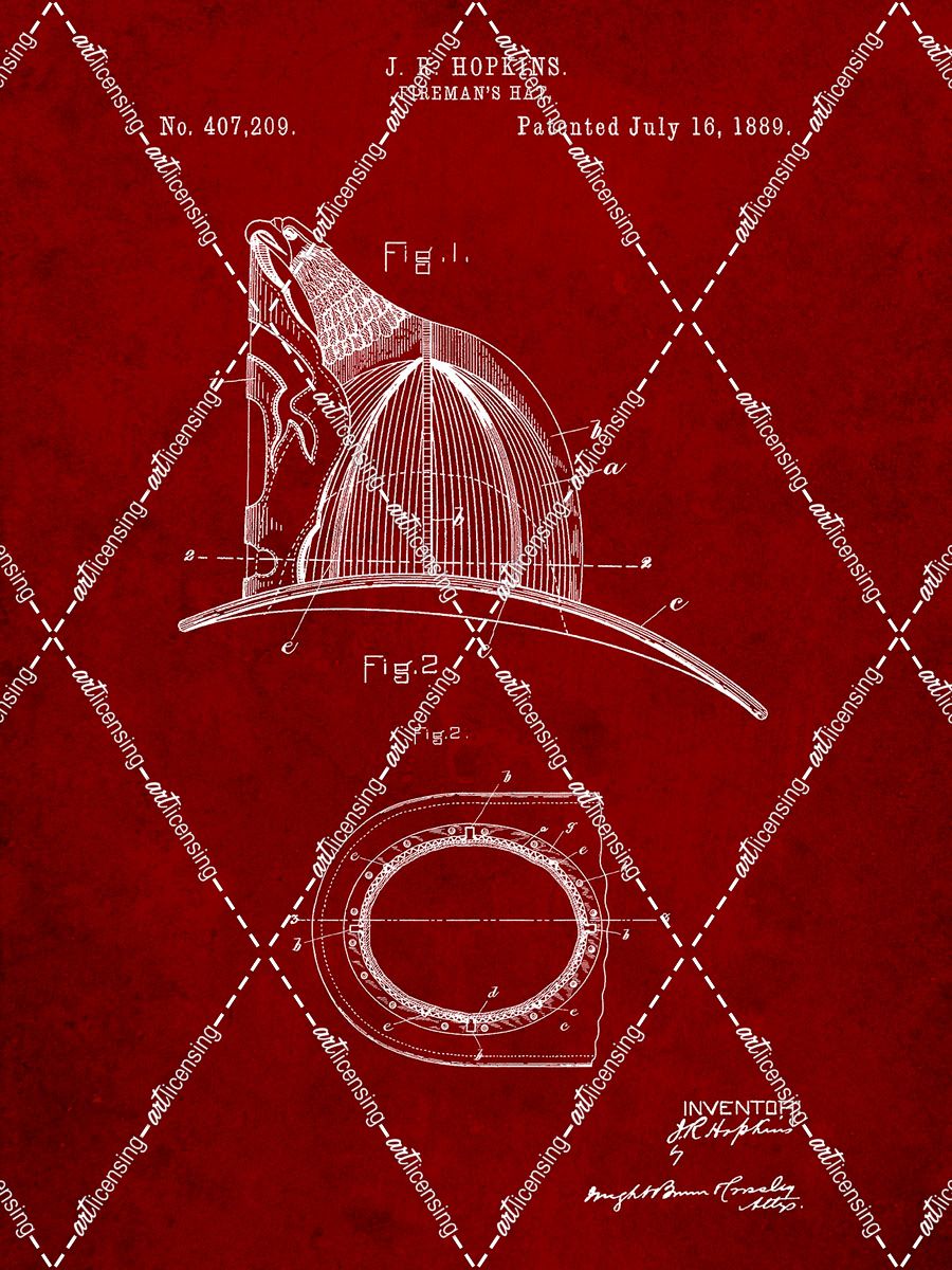 PP38-Burgundy Vintage Fireman’s Helmet 1889 Poster
