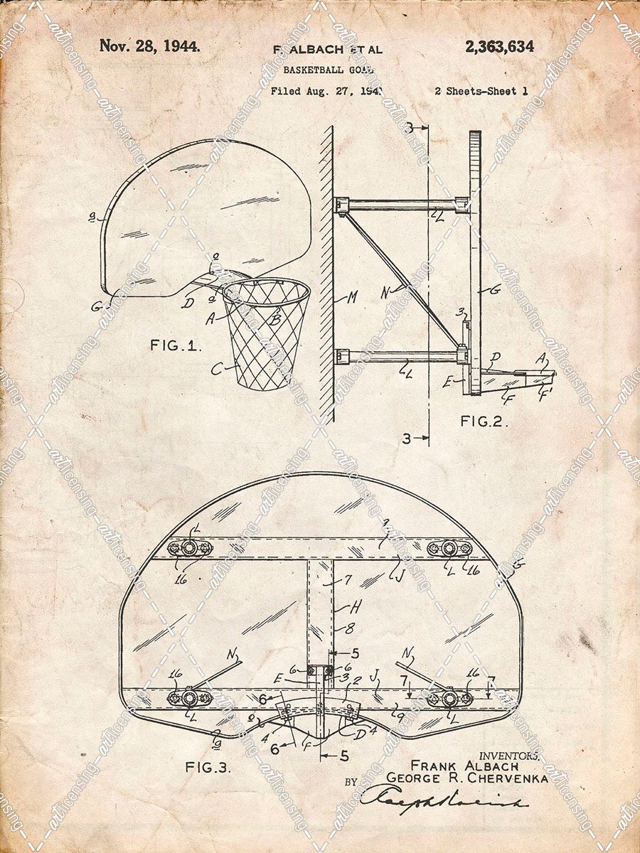 PP381-Vintage Parchment Basketball Goal Patent Print