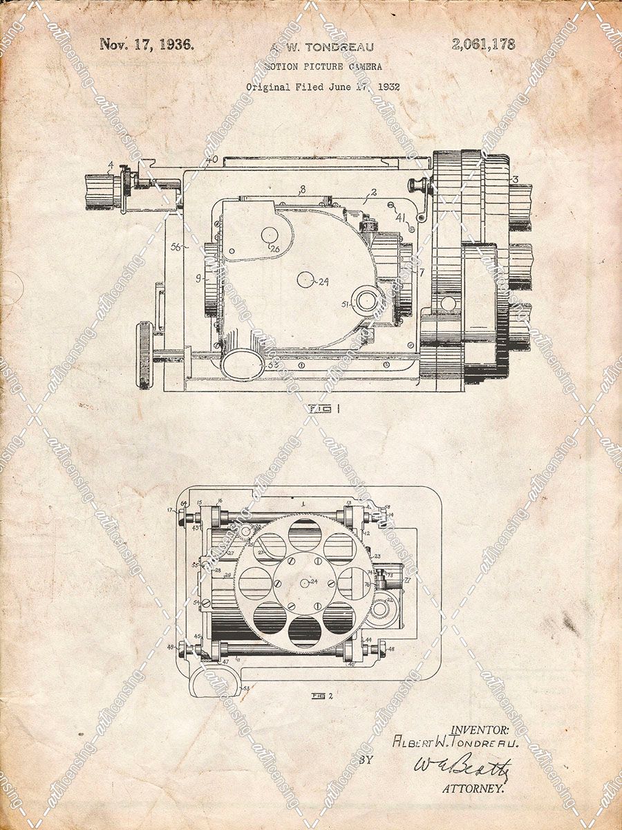 PP390-Vintage Parchment Motion Picture Camera 1932 Patent Poster