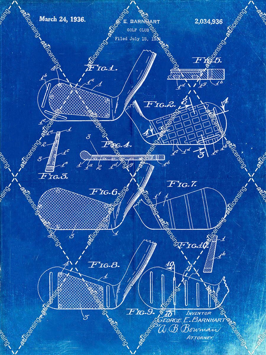 PP4-Faded Blueprint Golf Club Faces Patent Poster