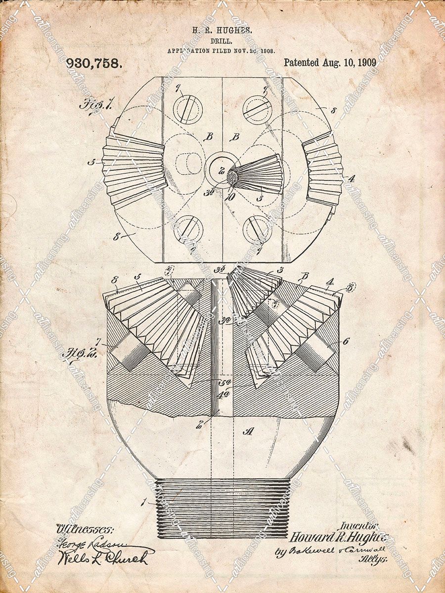 PP410-Vintage Parchment Howard Hughes Oil Drill Patent Poster