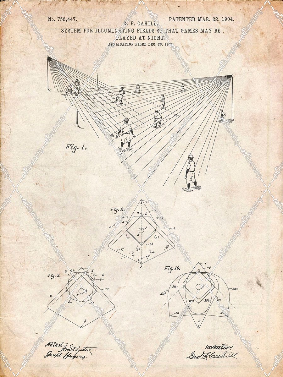 PP416-Vintage Parchment Baseball Field Lights Patent Poster