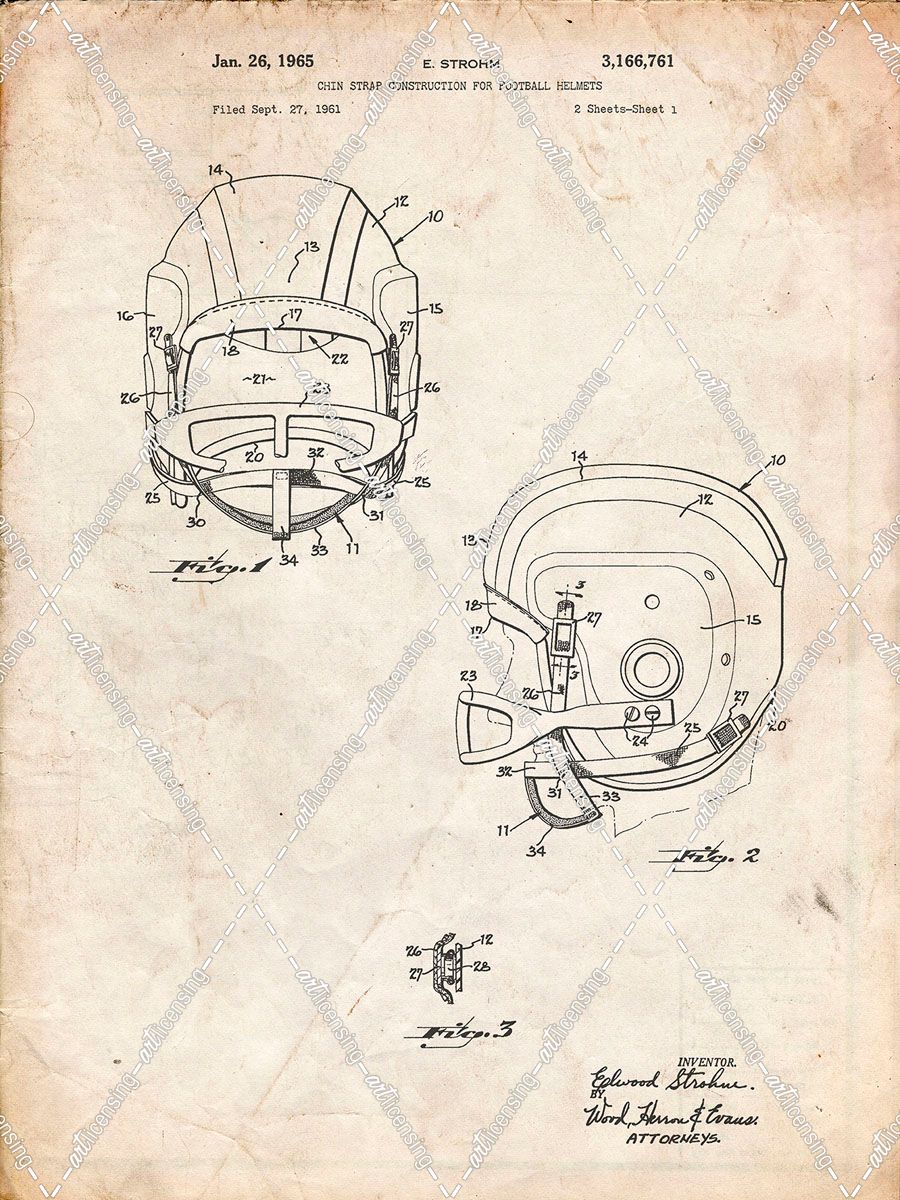 PP419-Vintage Parchment Face Mask Football Helmet 1965 Patent