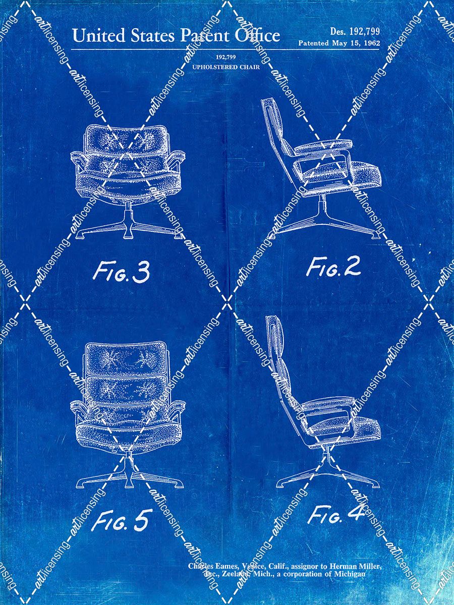 PP421-Faded Blueprint Eames Upholstered Chair Patent Poster
