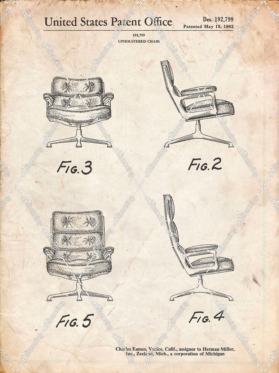 PP421-Vintage Parchment Eames Upholstered Chair Patent Poster