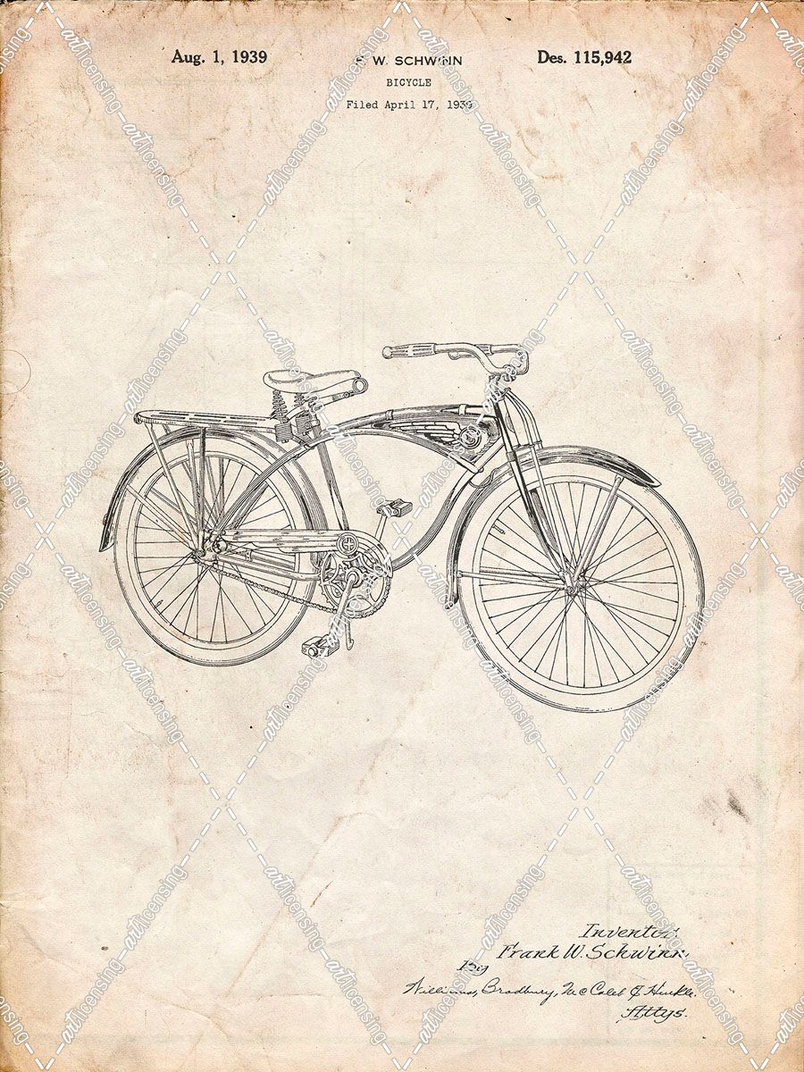 PP446-Vintage Parchment Schwinn 1939 BC117 Bicycle Patent Poster