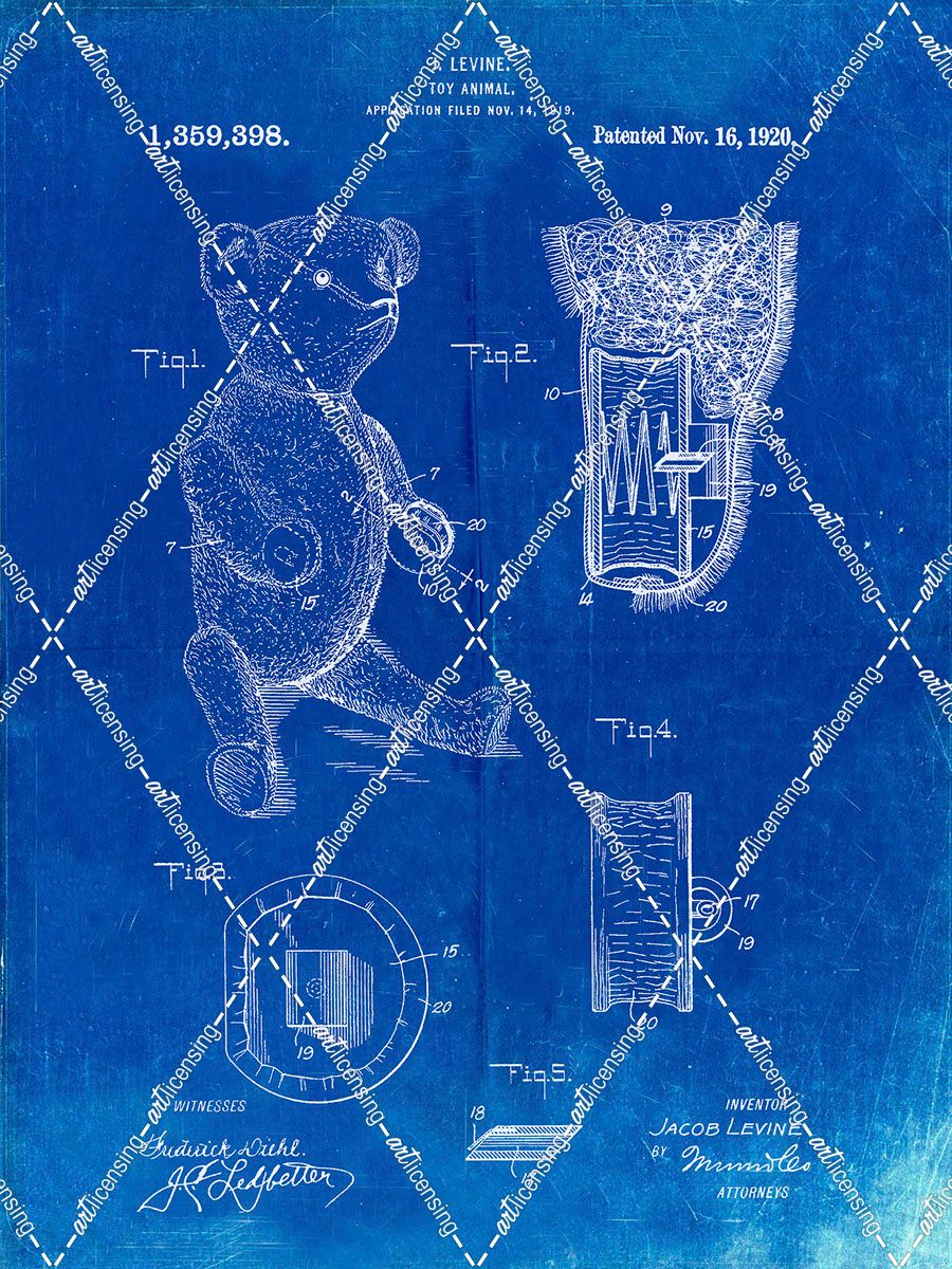 PP452-Faded Blueprint Whistle Teddy Bear 1919 Patent Poster