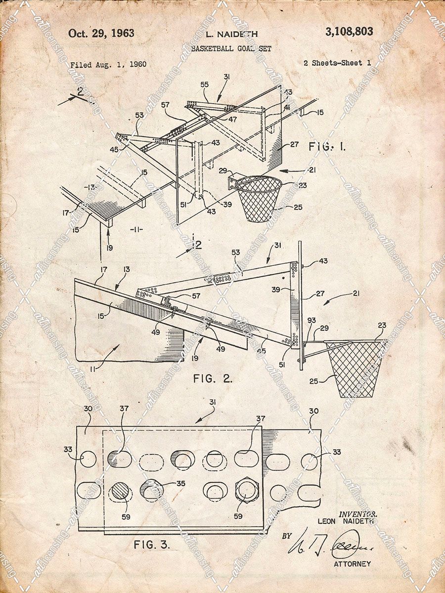 PP454-Vintage Parchment Basketball Adjustable Goal 1962 Patent Poster