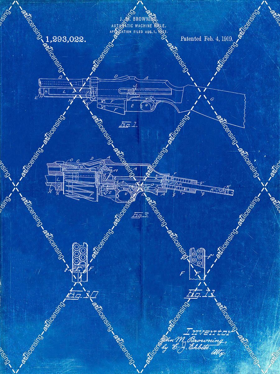 PP469-Faded Blueprint M1919 Browning Automic Rifle Patent Poster