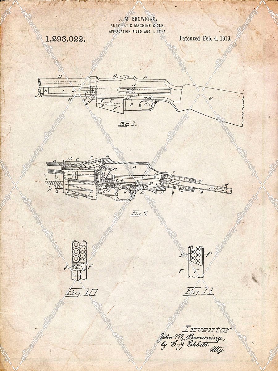 PP469-Vintage Parchment M1919 Browning Automic Rifle Patent Poster
