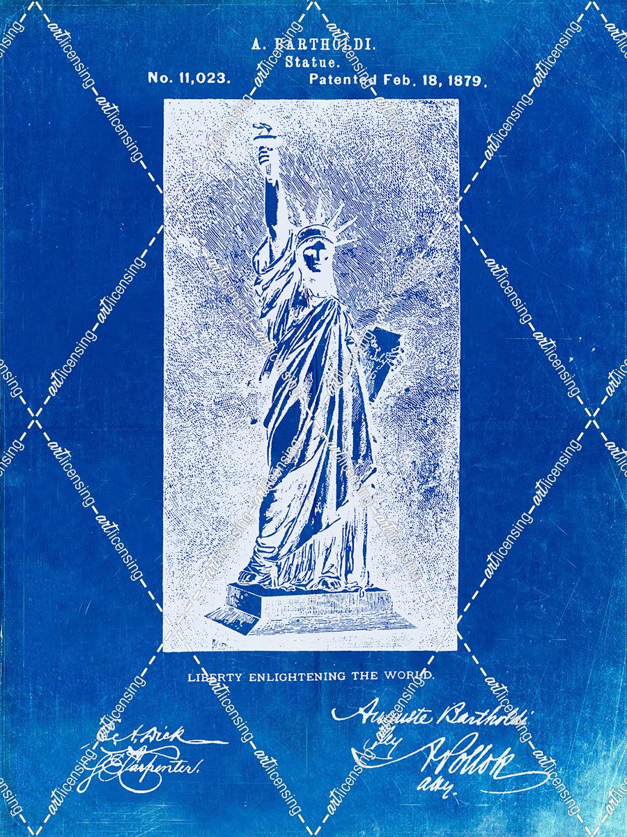 PP474-Faded Blueprint Statue Of Liberty Poster