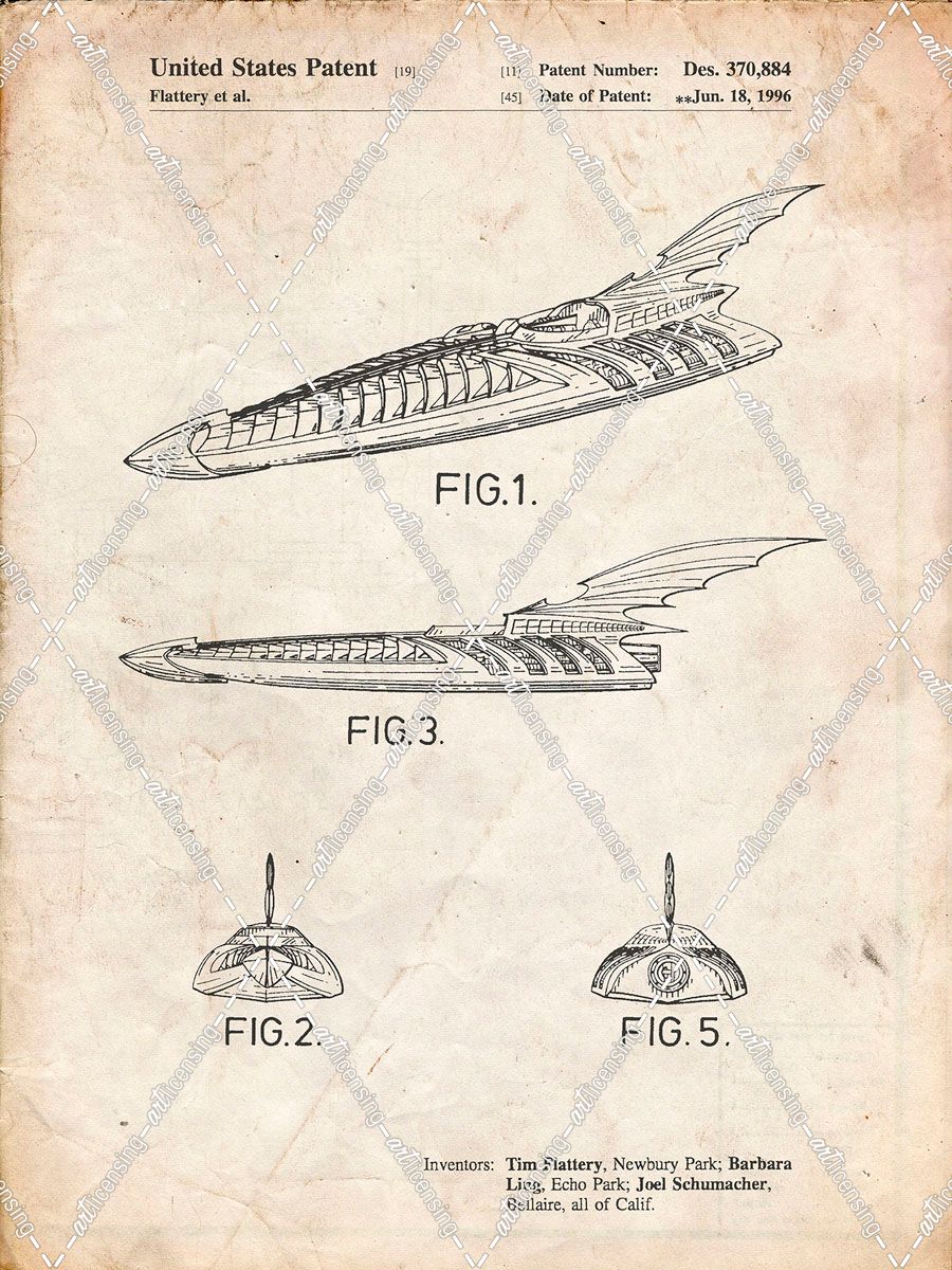 PP483-Vintage Parchment Batman Forever Batboat Patent Poster