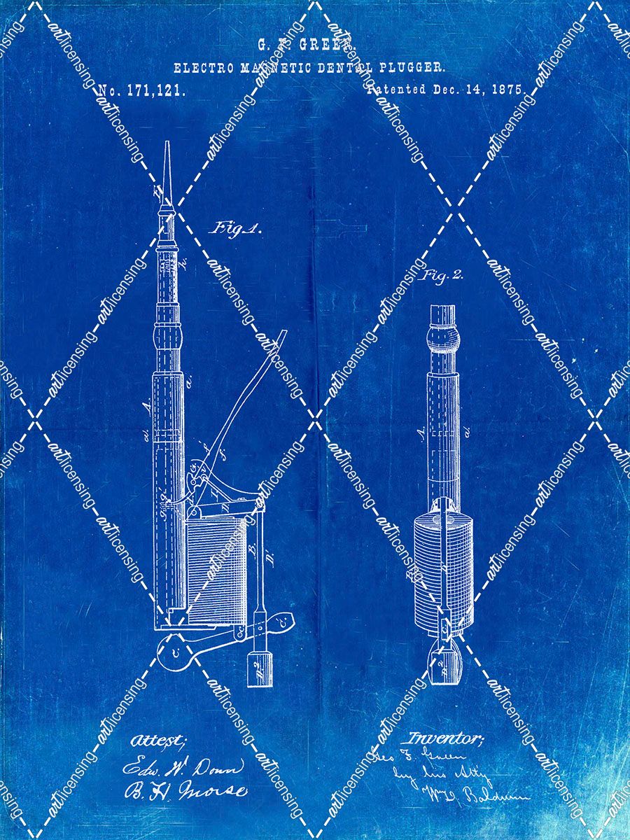PP491-Faded Blueprint Dentist Drill Patent Poster