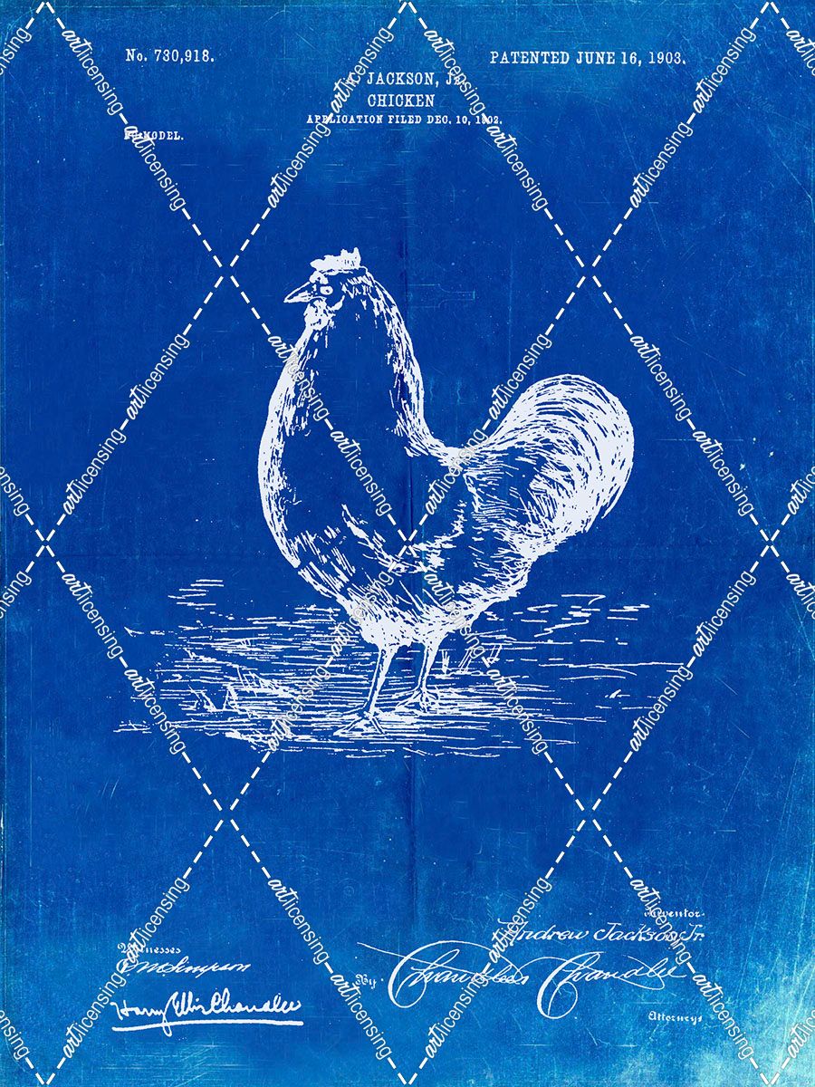 PP497-Faded Blueprint Chicken Patent Poster