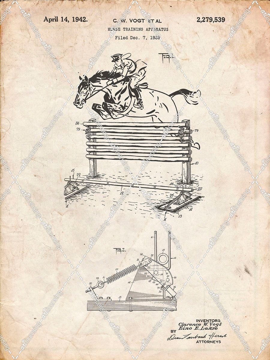PP507-Vintage Parchment Equestrian Training Oxer Patent Poster