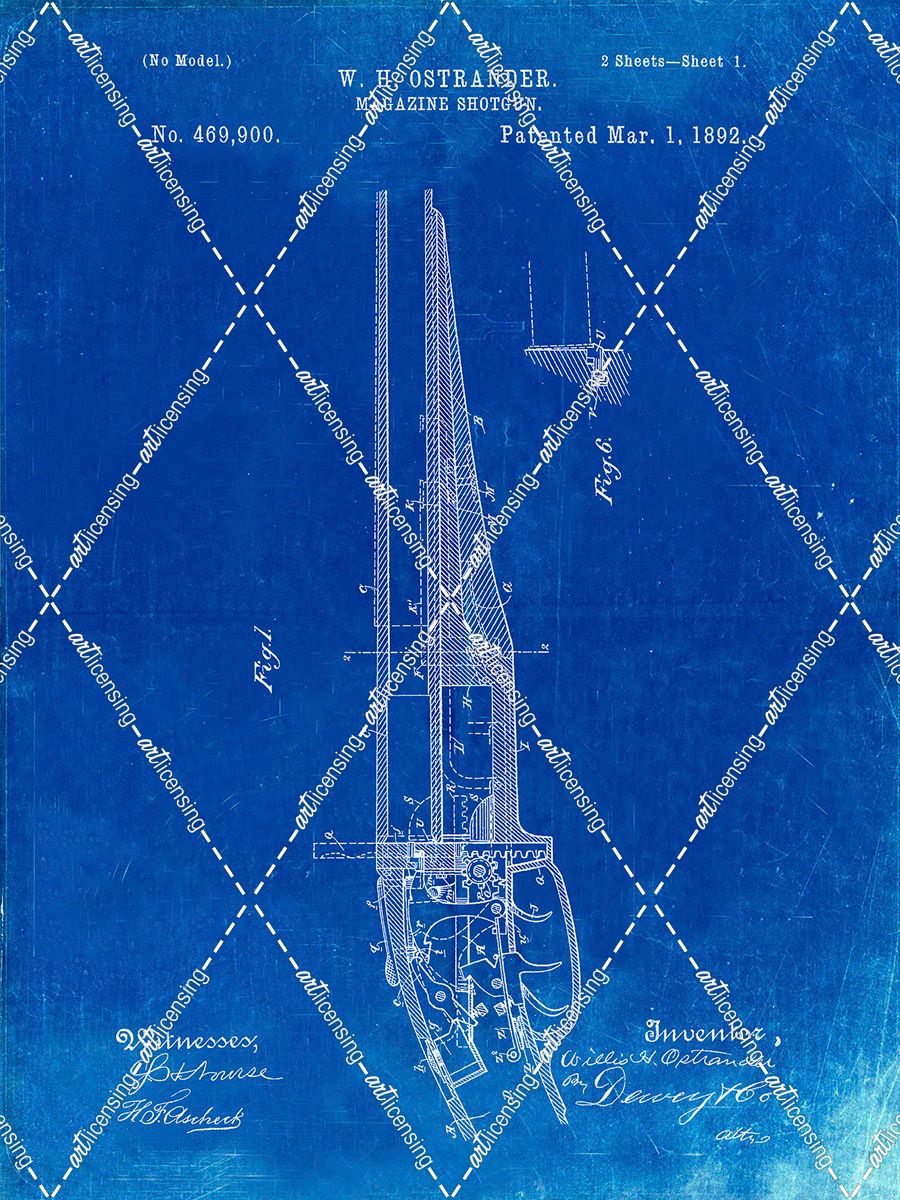 PP513-Faded Blueprint The Ostrander Shotgun Patent Poster