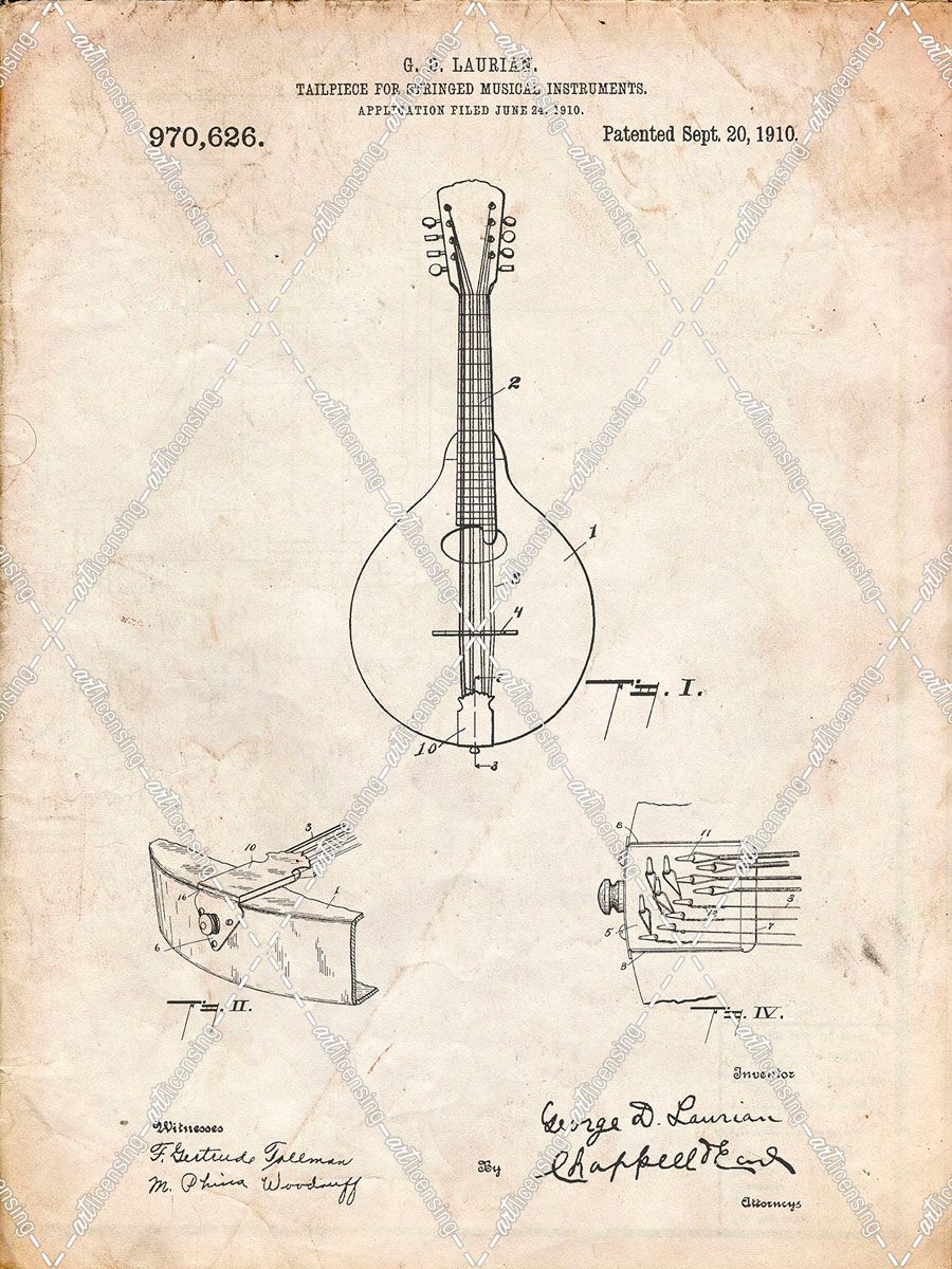 PP514-Vintage Parchment Gibson Mandolin Tailpiece Patent Poster