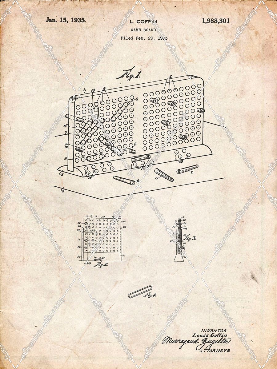 PP519-Vintage Parchment Battleship Game Patent Poster