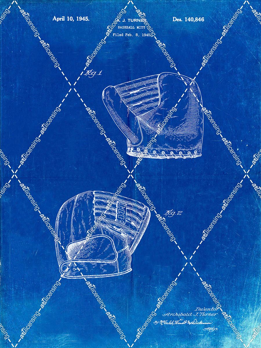 PP538-Faded Blueprint A.J. Turner Baseball Mitt Patent Poster