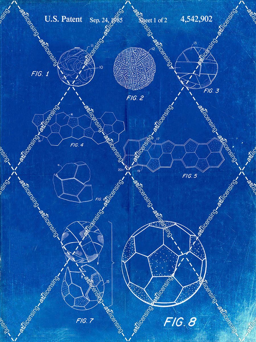 PP54-Faded Blueprint Soccer Ball 1985 Patent Poster