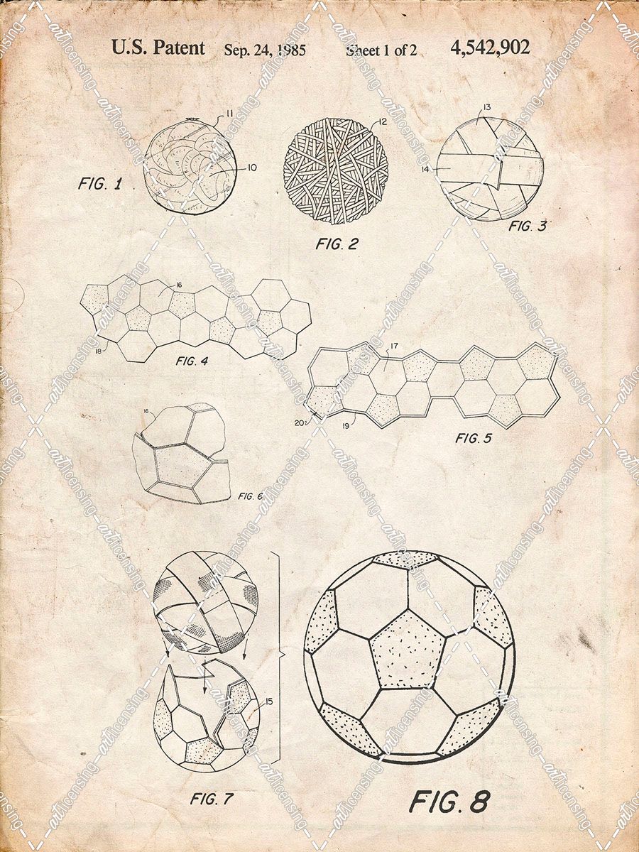 PP54-Vintage Parchment Soccer Ball 1985 Patent Poster