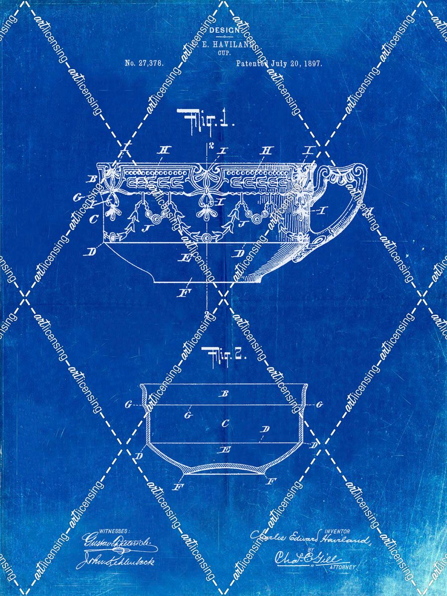 PP57-Faded Blueprint Haviland Demitasse Tea Cup Patent Poster