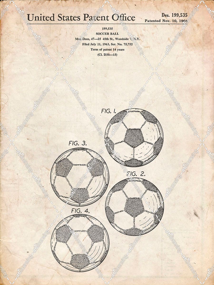 PP587-Vintage Parchment Soccer Ball 4 Image Patent Poster