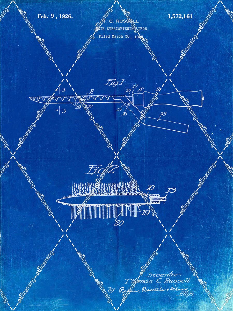 PP595-Faded Blueprint Curling Iron 1925 Patent Poster