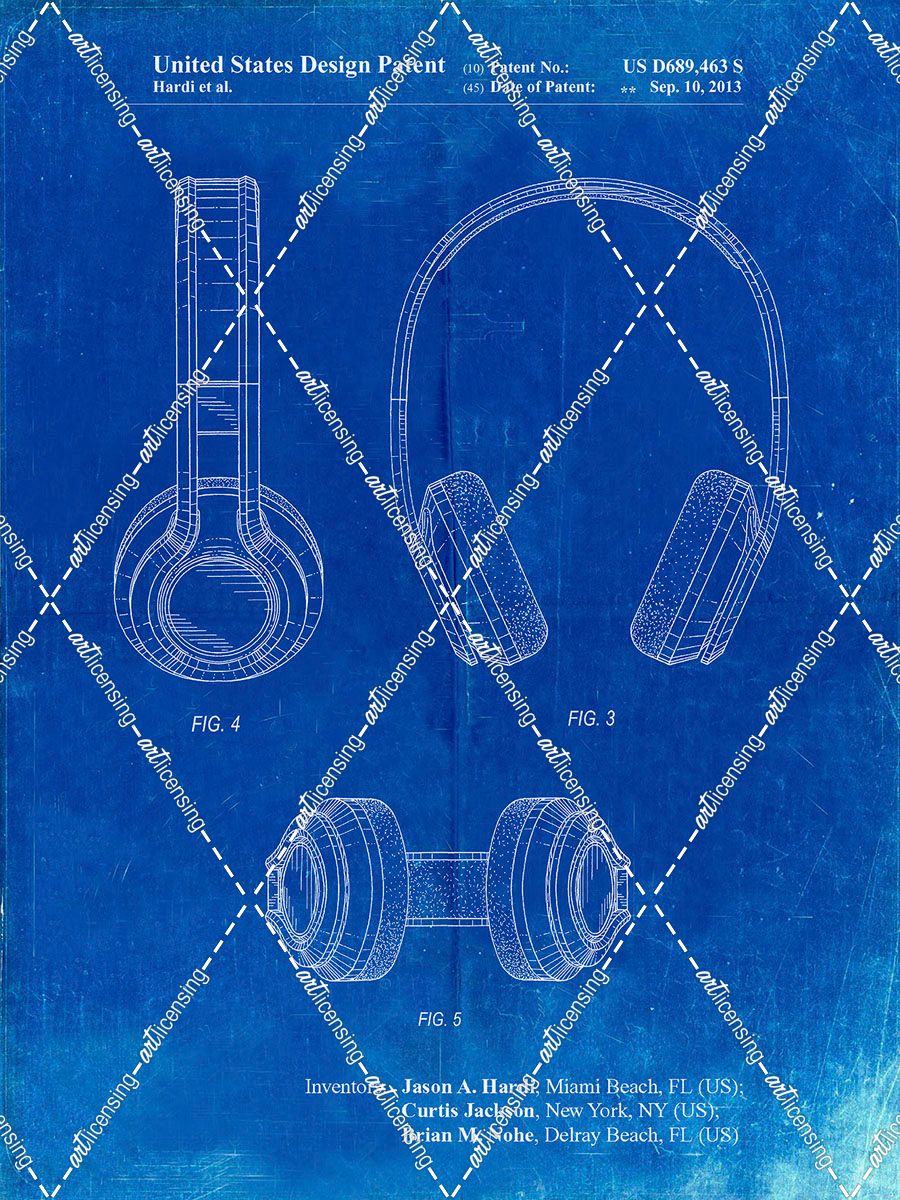 PP596-Faded Blueprint Bluetooth Headphones Patent Poster