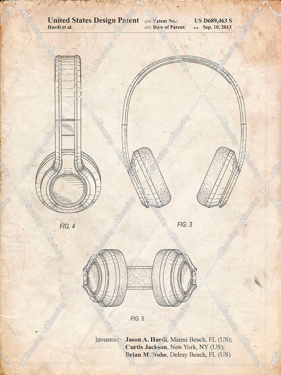 PP596-Vintage Parchment Bluetooth Headphones Patent Poster