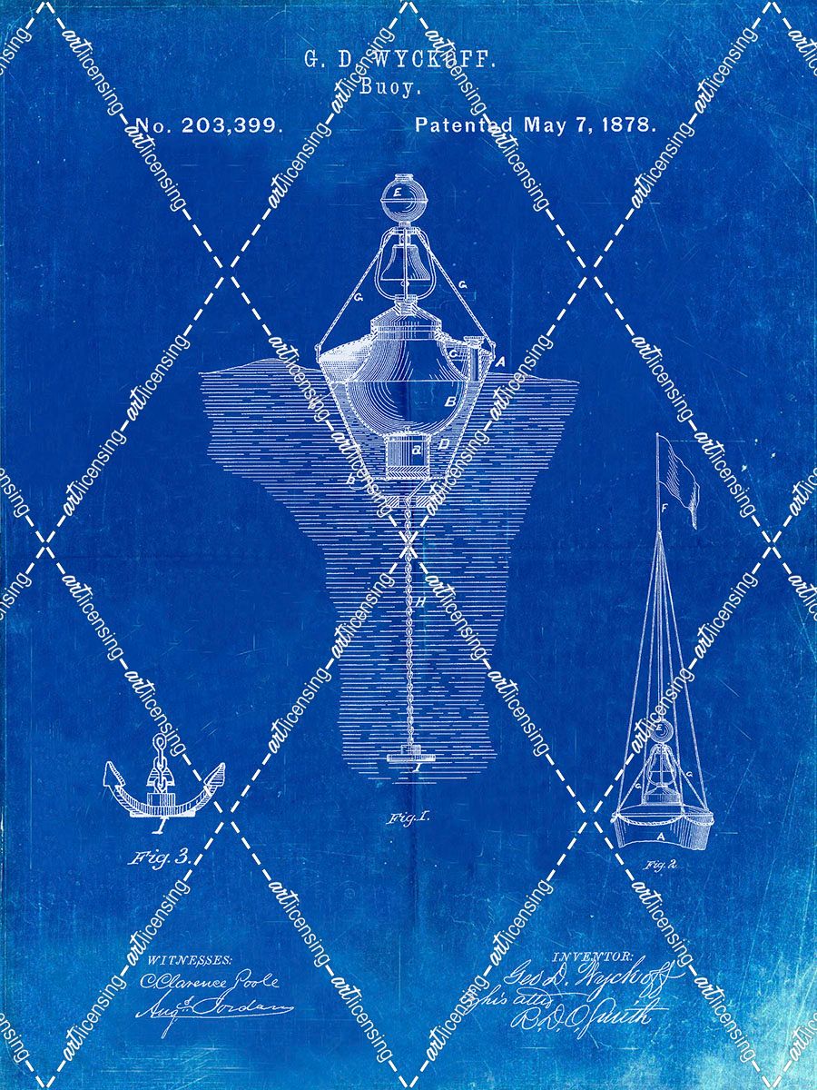 PP599-Faded Blueprint Water Buoy Patent Poster