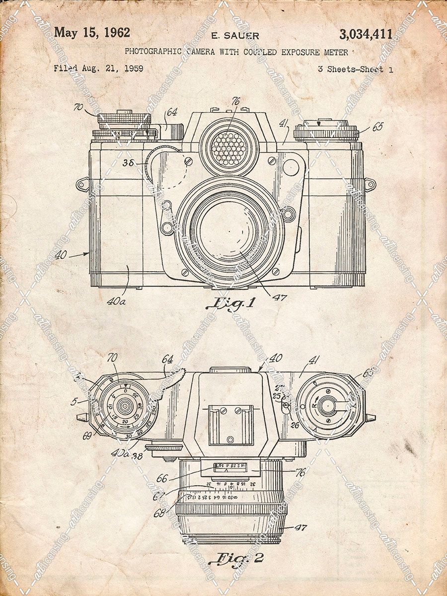 PP6-Vintage Parchment Zeiss Ikon Contarex Camera Patent Poster