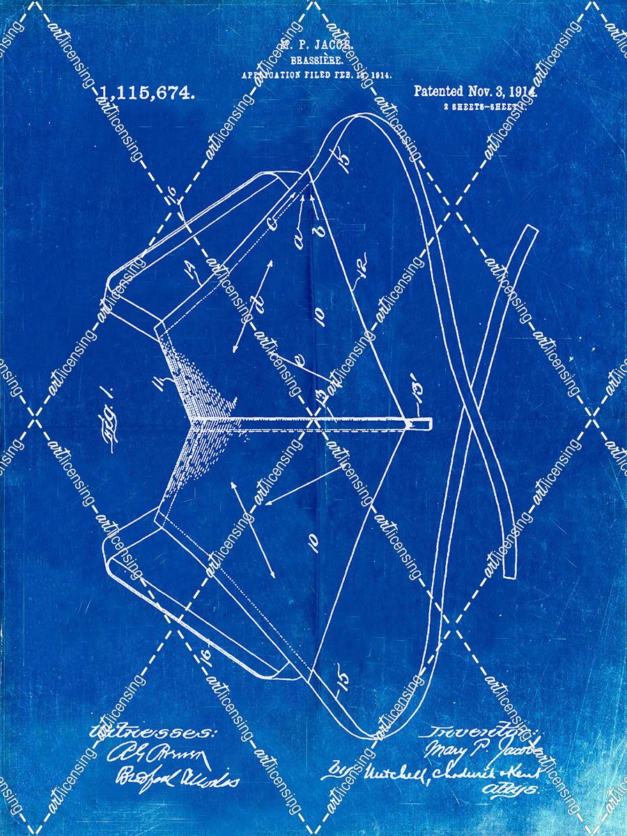 PP604-Faded Blueprint Brassiere (Bra) 1914 Patent Poster