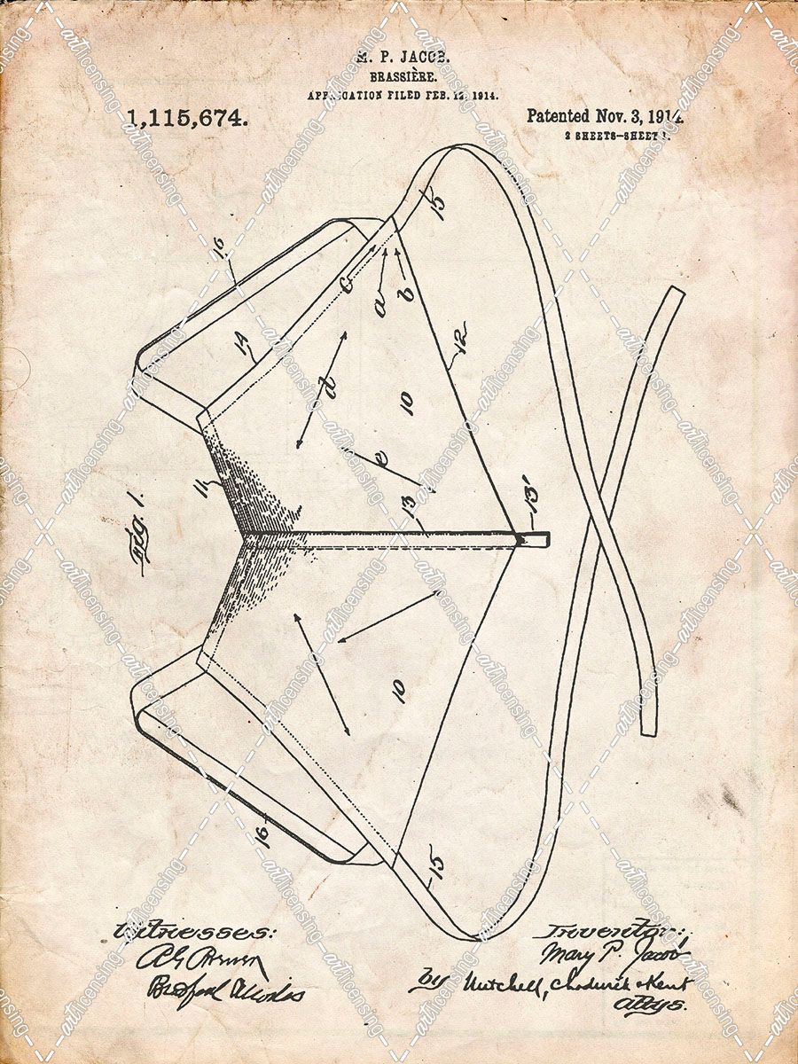 PP604-Vintage Parchment Brassiere (Bra) 1914 Patent Poster