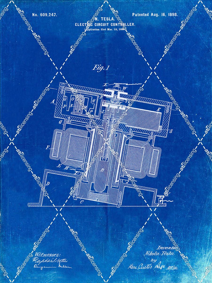 PP608-Faded Blueprint Tesla Electric Circuit Controller Poster