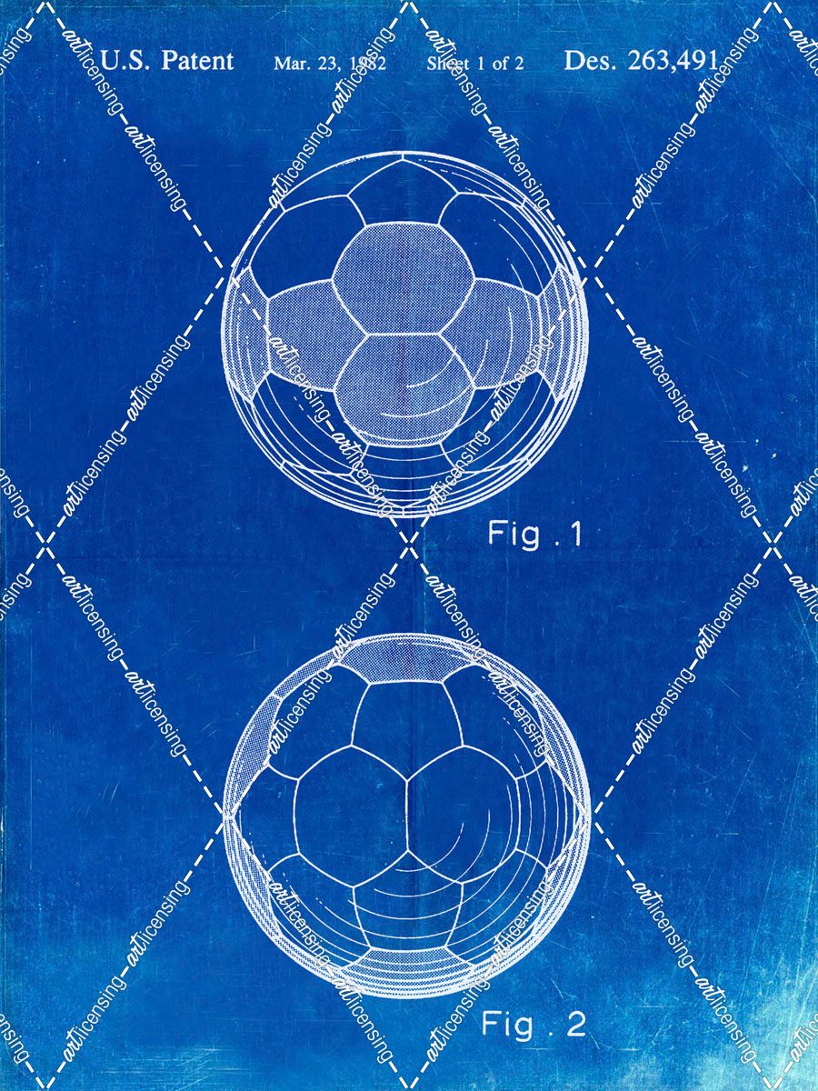 PP62-Faded Blueprint Leather Soccer Ball Patent Poster
