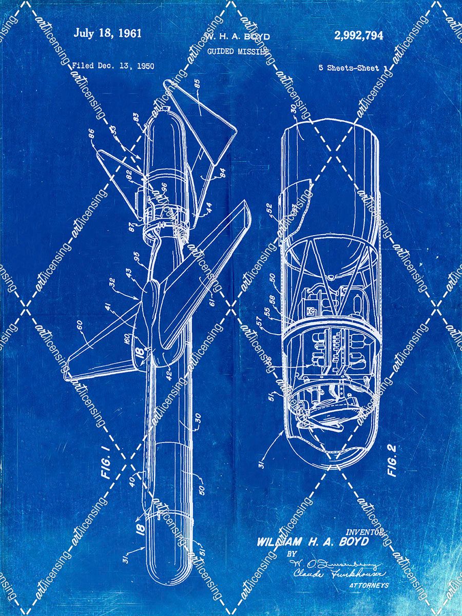 PP624-Faded Blueprint Cold War Era Guided Missile Patent Poster