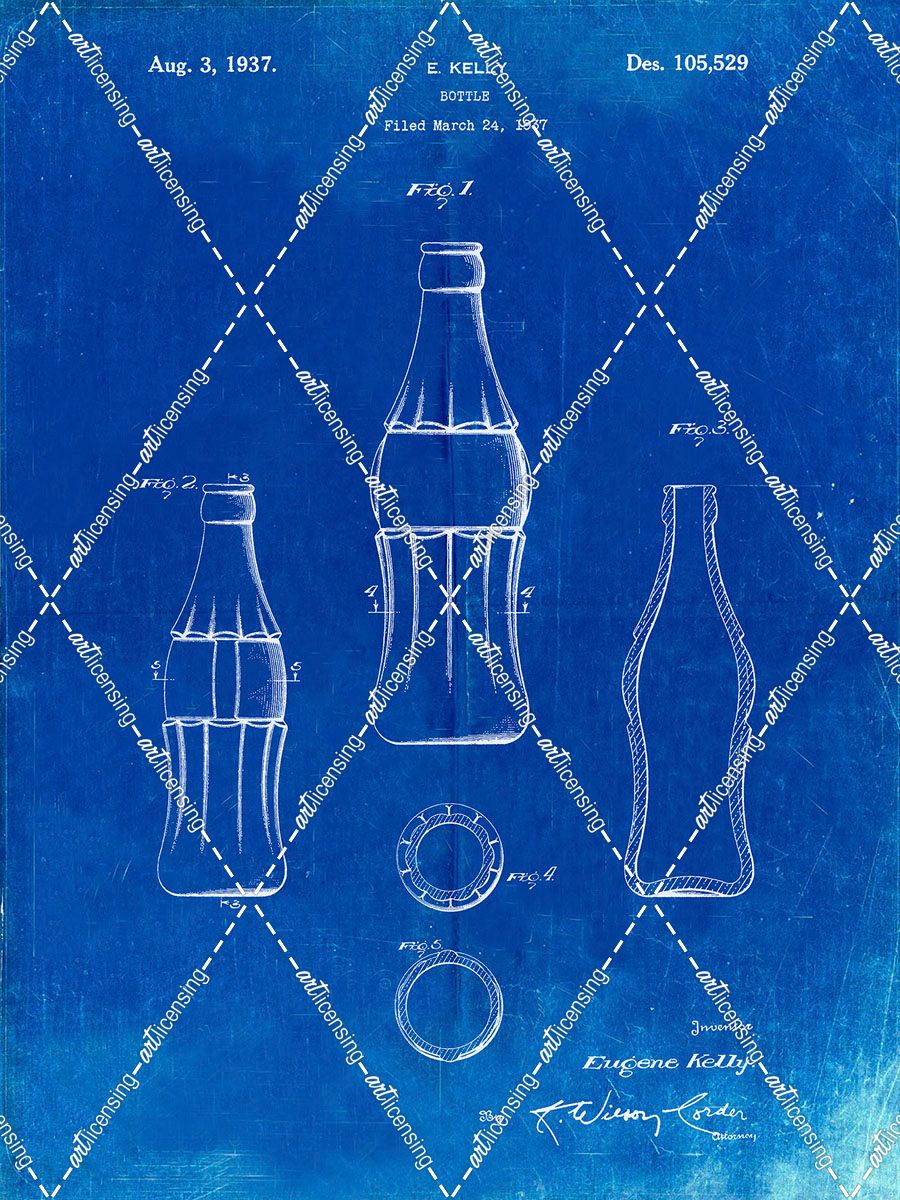 PP626-Faded Blueprint D-Patent Coke Bottle Patent Poster