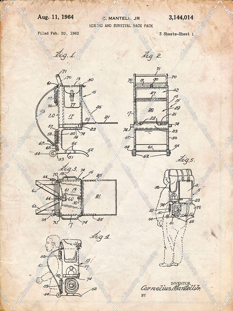 PP632-Vintage Parchment Framed Hiking Pack Patent Poster
