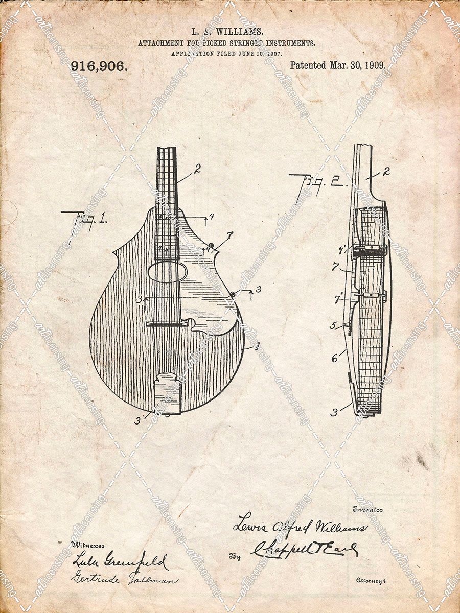 PP638-Vintage Parchment Mandolin Pick Guard Patent Poster