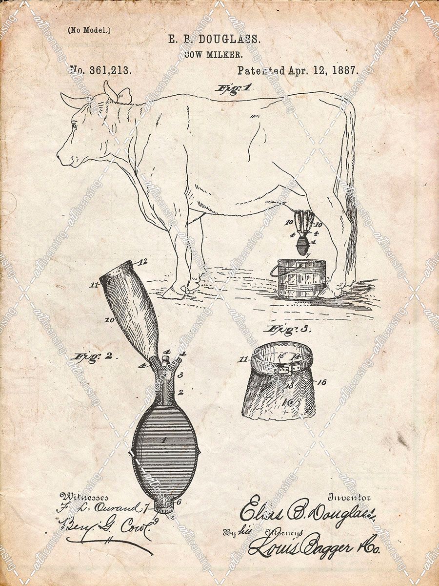 PP639-Vintage Parchment Cow Milker 1887 Patent Poster