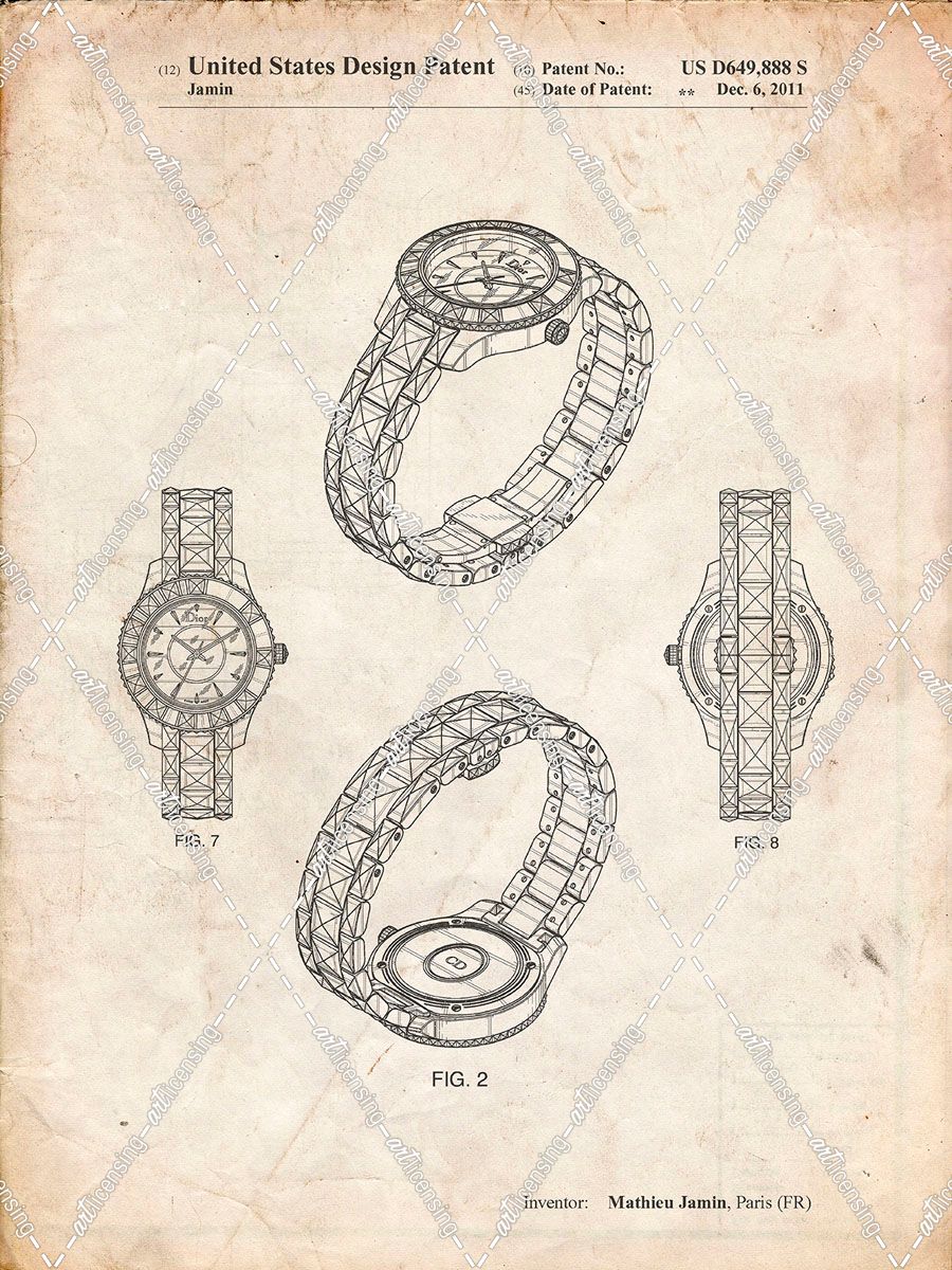 PP651-Vintage Parchment Luxury Watch Patent Poster