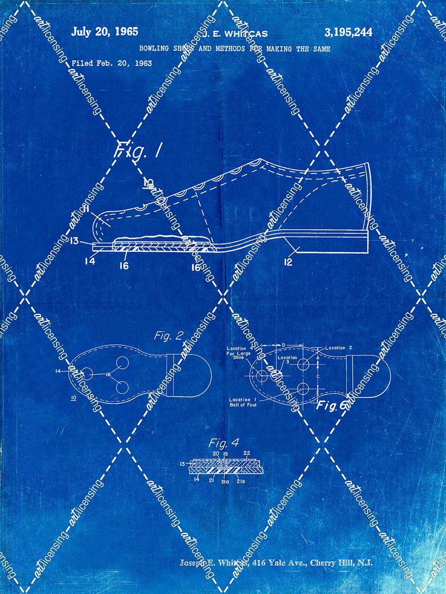 PP655-Faded Blueprint Vintage Bowling Shoes Patent Poster