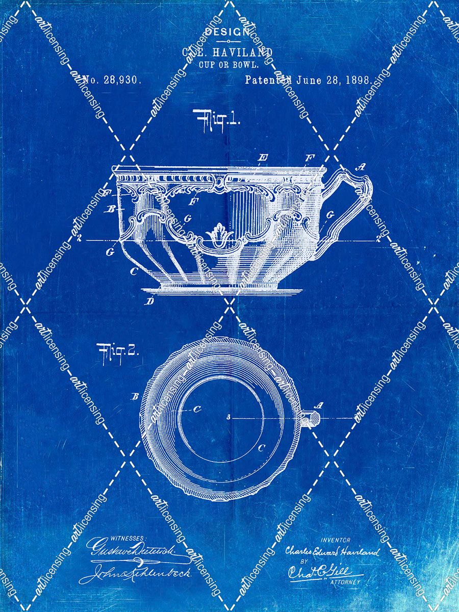 PP670-Faded Blueprint Gyrocompass Patent Poster