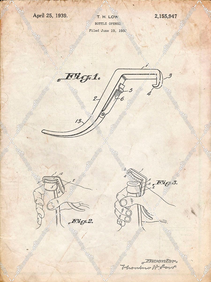 PP672-Vintage Parchment Bottle Opener Patent Poster
