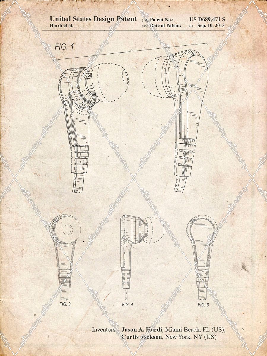 PP686-Vintage Parchment Ear Buds Patent Poster
