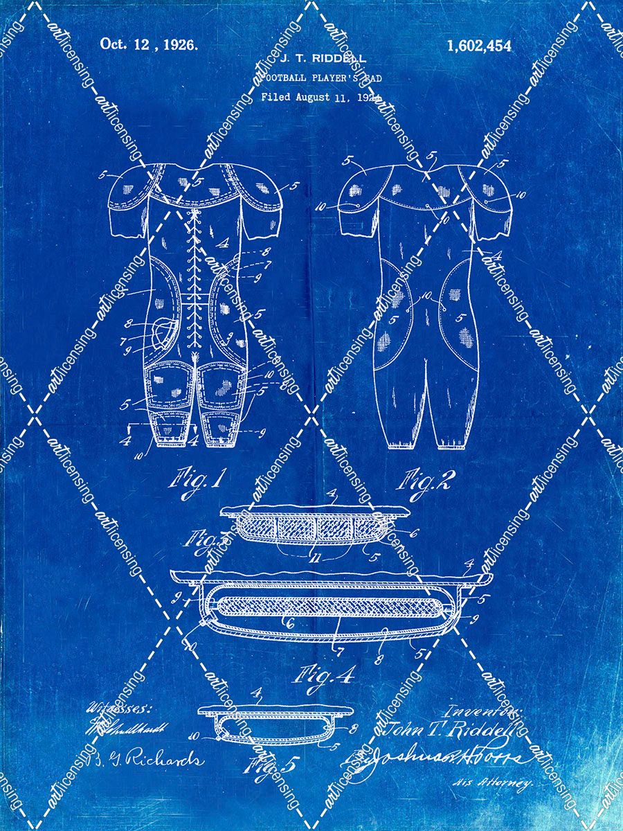 PP690-Faded Blueprint Ridell Football Pads 1926 Patent Poster
