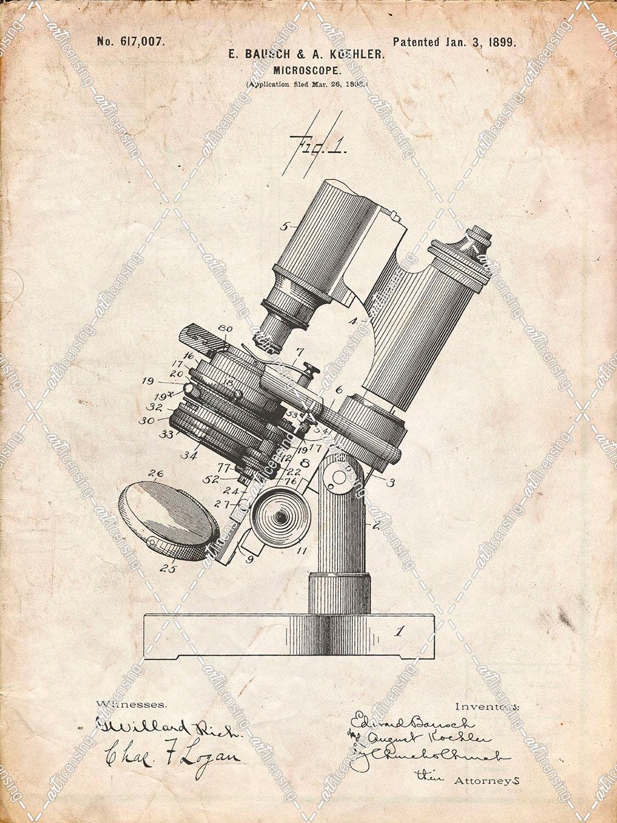 PP721-Vintage Parchment Bausch and Lomb Microscope Patent Poster