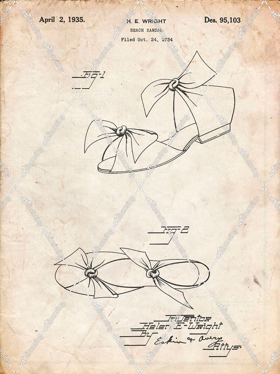 PP722-Vintage Parchment Beach Sandal 1934 Patent Poster